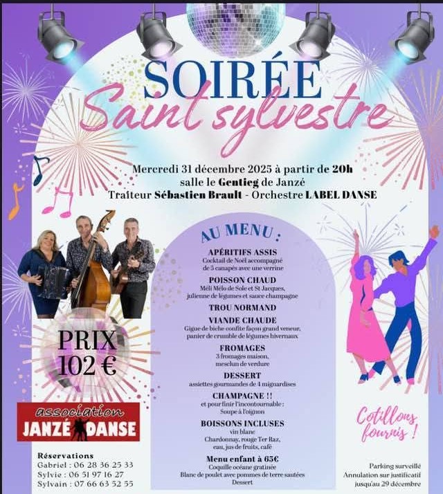 | Salle des Fêtes , Réveillon de St Sylvestre. Réservations au 02 43 35 50 91