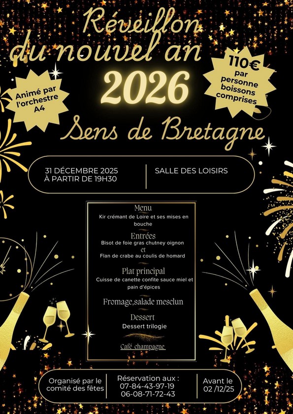 | Salle des fêtes , Réveillon de la St Sylvestre Réservation auprès de Monsieur NORMAND Robert au 0670582798